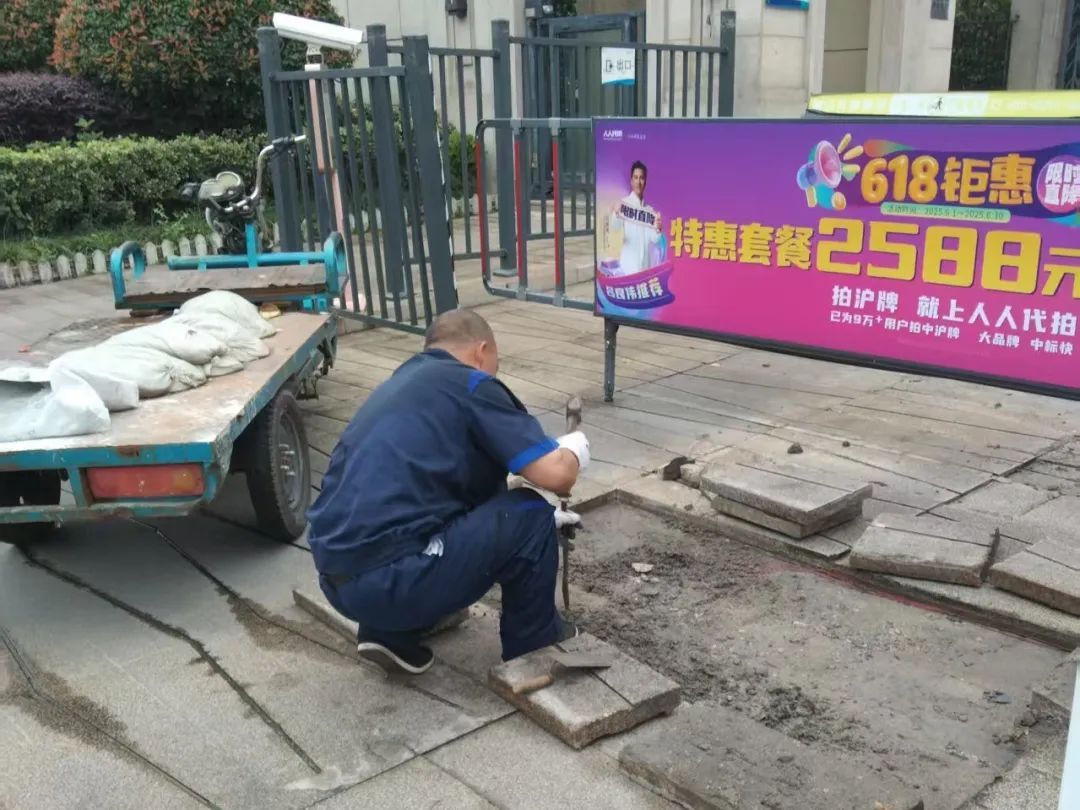 治理有温度,服务更要有力度。今年4月初,小区西门地砖松动,存在安全隐患。党支部第一时间组织党员志愿者现场勘查,协调物业当晚完成围挡。第二天上午,施工人员便完成地砖拆除和重铺,不到24小时解决了问题。“要不是他们及时处理,我推婴儿车经过可能就摔倒了。”居民刘女士感慨道。