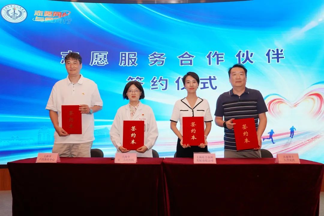 在深化合作、跨界联动环节,市二医院党委分别与上海社会福利发展有限公司、上海市卢湾体育中心、五夜骑士人声乐团签署了公益合作伙伴框架协议,合作各方将整合优势资源,在社会公益、医体融合、音乐疗愈等领域共同构建更广阔的公益生态圈。作为“公益荟”计划的首批伙伴,五夜骑士人声乐团现场以一首公益主题曲《我们一起远航》进行了展演。