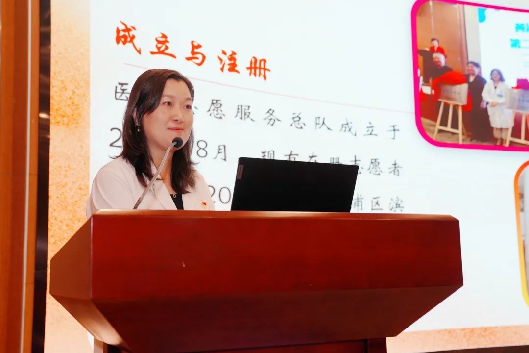 在全体与会者的见证下,黄浦区志愿者协会庄重地将志愿者服务总队队旗授予医院。