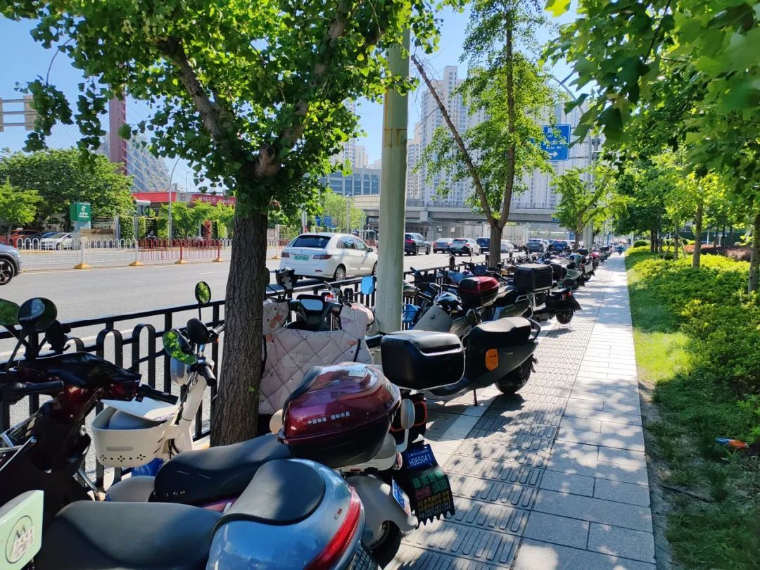 这个让骑手们交口称赞的停车区,三个月前还是另一番景象:人行通道上电动车横七竖八,行人得侧身艰难穿行。
