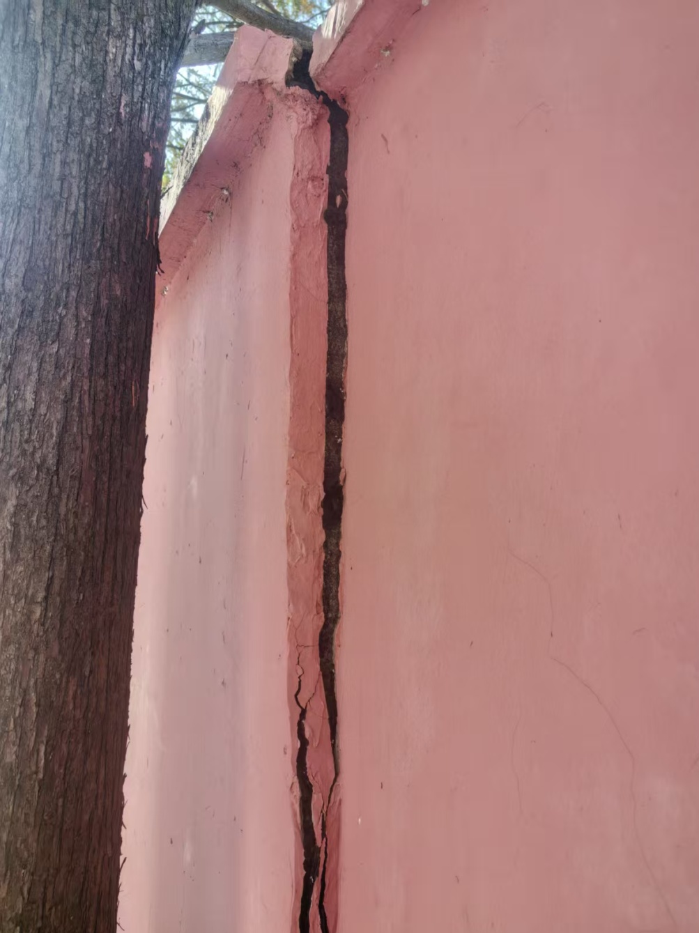 始建于1995年的春花苑一期(哈密路1719弄)距今已有30年,经过多年的风吹雨打,小区的许多硬件设施老旧、破损严重,特别是沿河围墙(长102米、高2.9米的红砖水泥墙体)年久失修,墙面污迹斑驳、起皮脱落,还有好几处开裂,存在较大的安全隐患。“经过去年的两次台风,本来就开裂的围墙在旁边树木的拍打下更加倾斜,裂缝也大到足够人伸进一只手掌。”王满泗桥居委会主任黄燕告诉记者。