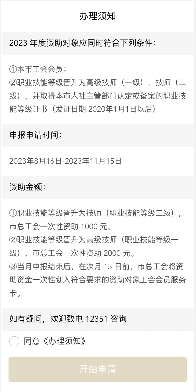 ③技能等级晋升为高级技师(一级),市总工会一次性资助2000元;