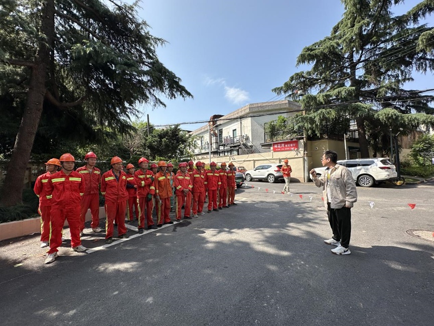 为破解城市树线矛盾处置难题,2025年5月底,虹口区绿化市容局根据市绿化市容局《关于印发〈关于进一步加强城市树木与电力线路等公用设施安全管理的实施意见〉 的通知》(沪绿容〔2025〕46号)文件精神,牵头成立辖区内树线、树牌、树灯专项治理工作专班。专班由局属绿化中心、各街道林长办、电力公司等单位组成,积极化解汛前潜在隐患。