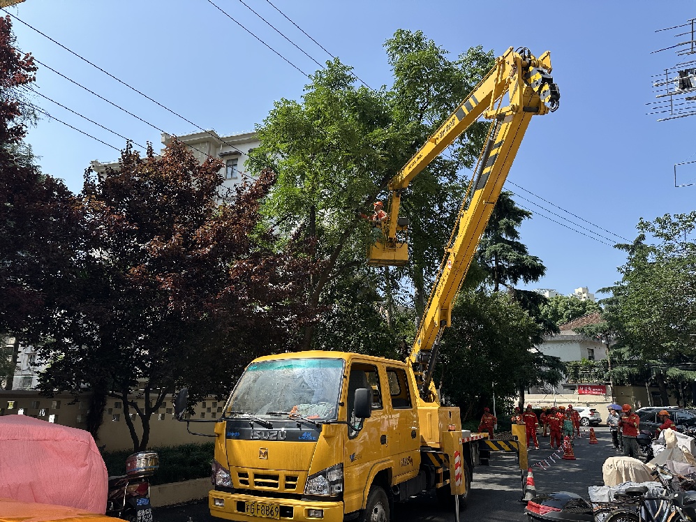 6月6日,绿化养护单位作业时发现水电路 40 号周边绿地内存在树线隐患,上报专班后,电力公司安排人员到场,指导绿化养护人员对2 株香樟实施修剪,消除隐患。