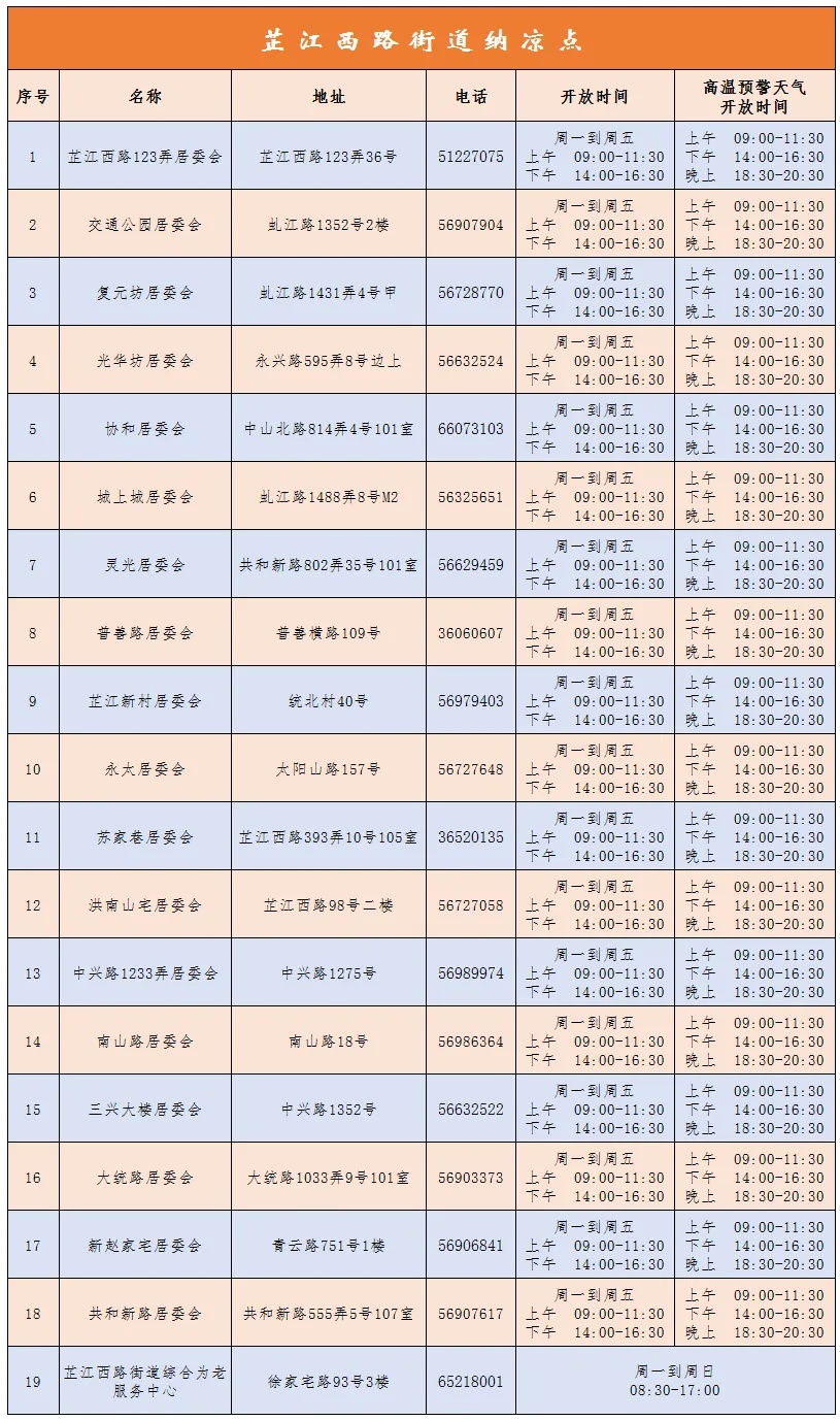 据悉,19个纳凉点覆盖所有居民区,开放时间从早9点至晚16点半,高温预警天气还会延长开放时间至晚间8点半。居民可通过各站点电话咨询具体服务内容。在这个炎炎夏日,芷江西路街道的“清凉驿站”正用贴心的服务,为居民撑起一片“绿荫”。