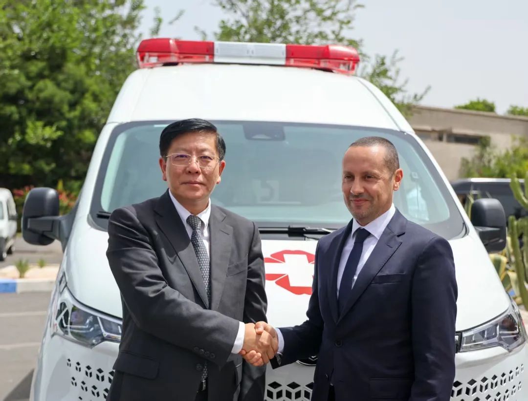 同时,为推动摩洛哥医疗急救事业发展,上海向摩洛哥卫生与社会保障部捐赠了3辆救护车,其中监护型1辆、转运型2辆,总价值约120万元人民币。监护型救护车配置便携式人工呼吸机、心电监护仪、微量注射泵、除颤仪、综合急救箱等医疗设备;转运型救护车配置自动上车担架。