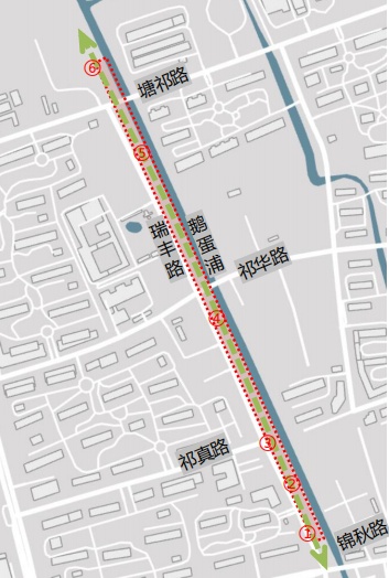 夏长浦周边以住宅、社区为主,总长约450米,本次设计地块为南北向狭长滨河绿地。鹅蛋浦设计范围为南北向狭长滨河绿地,总长约1000米,南至锦秋路、北至蕰藻浜、西侧贴临瑞丰路。在前期调研中,陈旧、灰暗、封闭、单调是附近居民对两条河道的印象。
