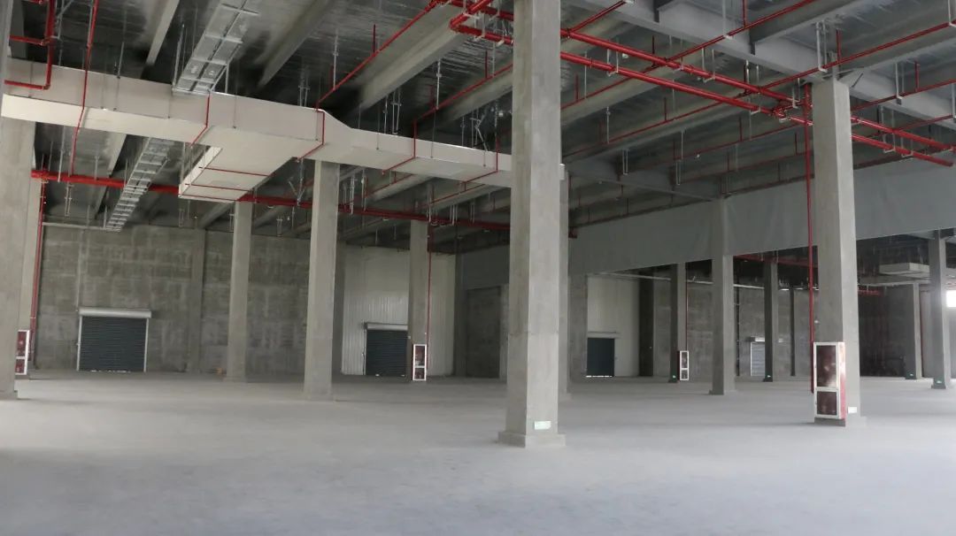 走进产业园,现代化建筑错落有致,内部道路宽敞平整,两侧的绿植在蓝天的映射下为园区增添了几分生机。步入标准厂房,几根高大的钢柱支撑起开阔的内部空间,各类管道、线路等基础设施已安装就位,静待企业生产设备入场调试。