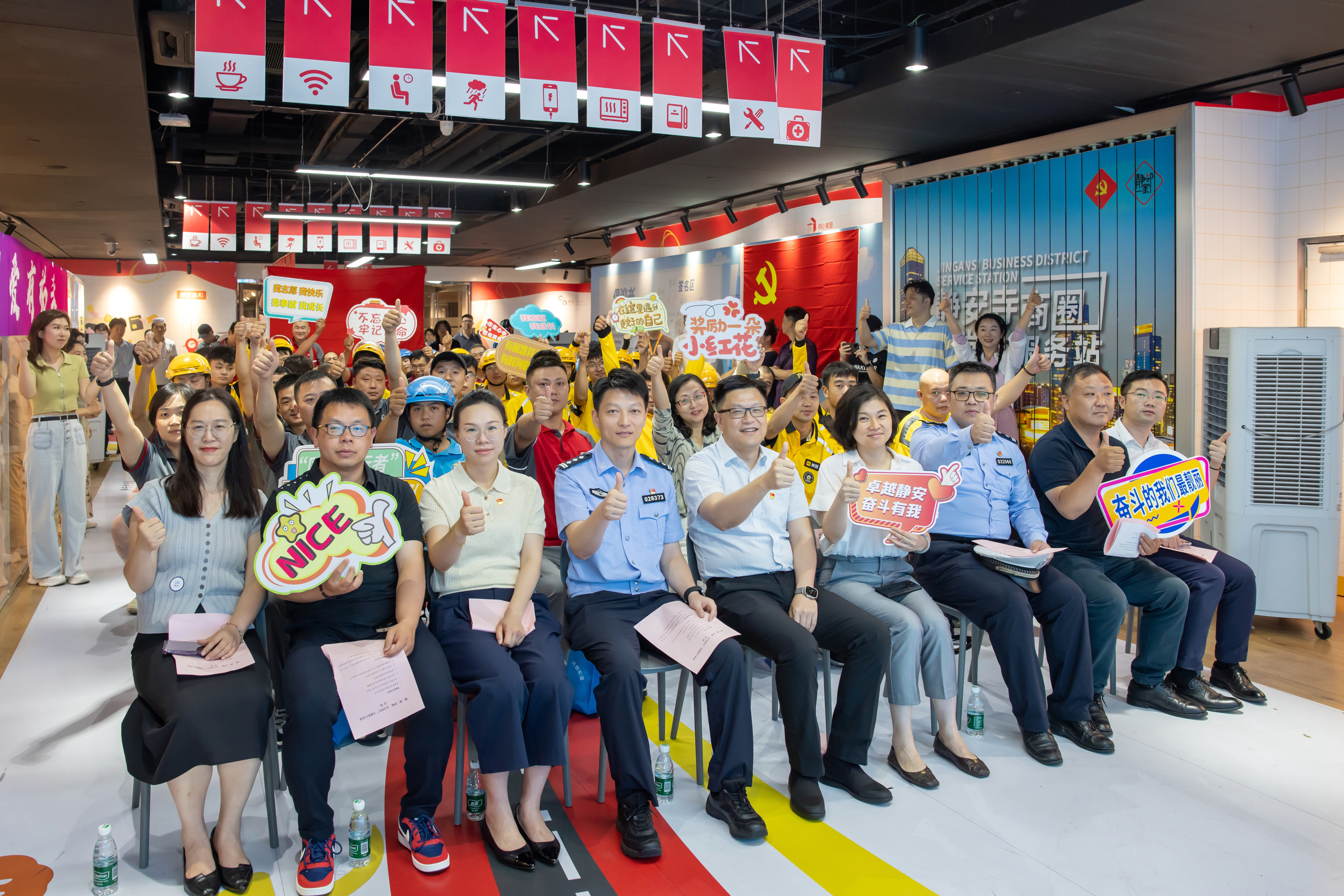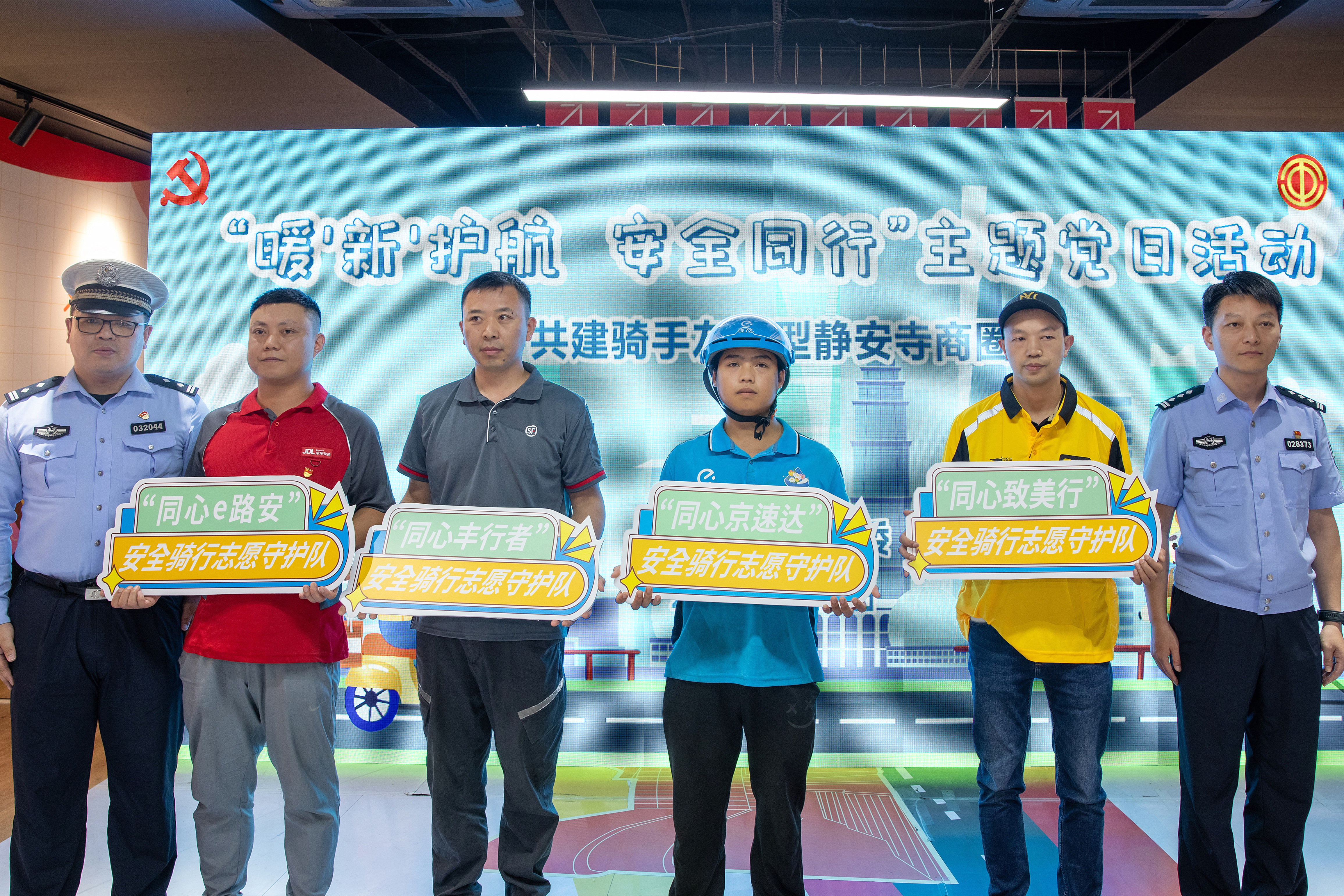 7月16日下午,静安寺街道在静安商圈党群服务站举行“暖‘新’护航·安全同行”主题党日活动。来自顺丰、美团、京东、饿了么等平台的百余位快递外卖骑手共同加入这场活动,见证街道为更好地共建骑手友好型静安寺商圈,持续打造更多友好场景,提升户外快递外卖骑手的骑行安全意识与权益保障认知的又一次生动实践。