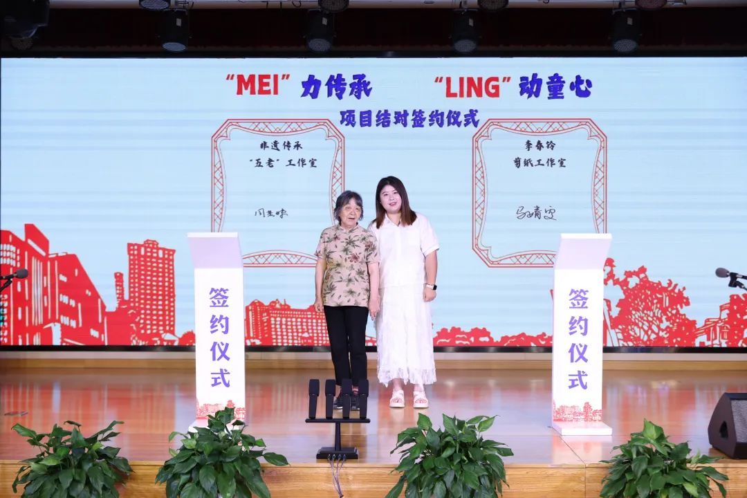 值得一提的是,非遗剪纸艺术传承的“五老”工作室代表周若妹与李春铃剪纸工作室君莲幼儿园代表马婧雯签约结对“MEI力传承·LING动童心”项目。今后,颛桥的孩子们将有更多机会接触剪纸艺术,让非遗文化在幼小的心灵中生根发芽。