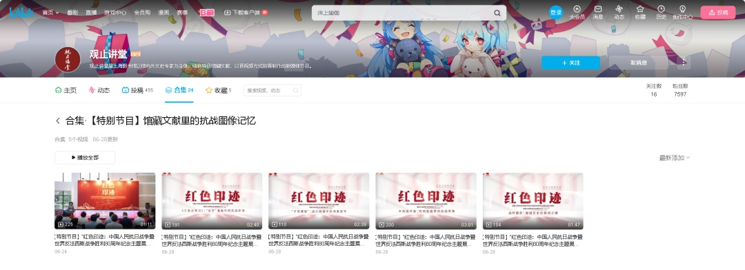 B站账号“观止讲堂”特别节目之“馆藏文献里的抗战图像记忆”