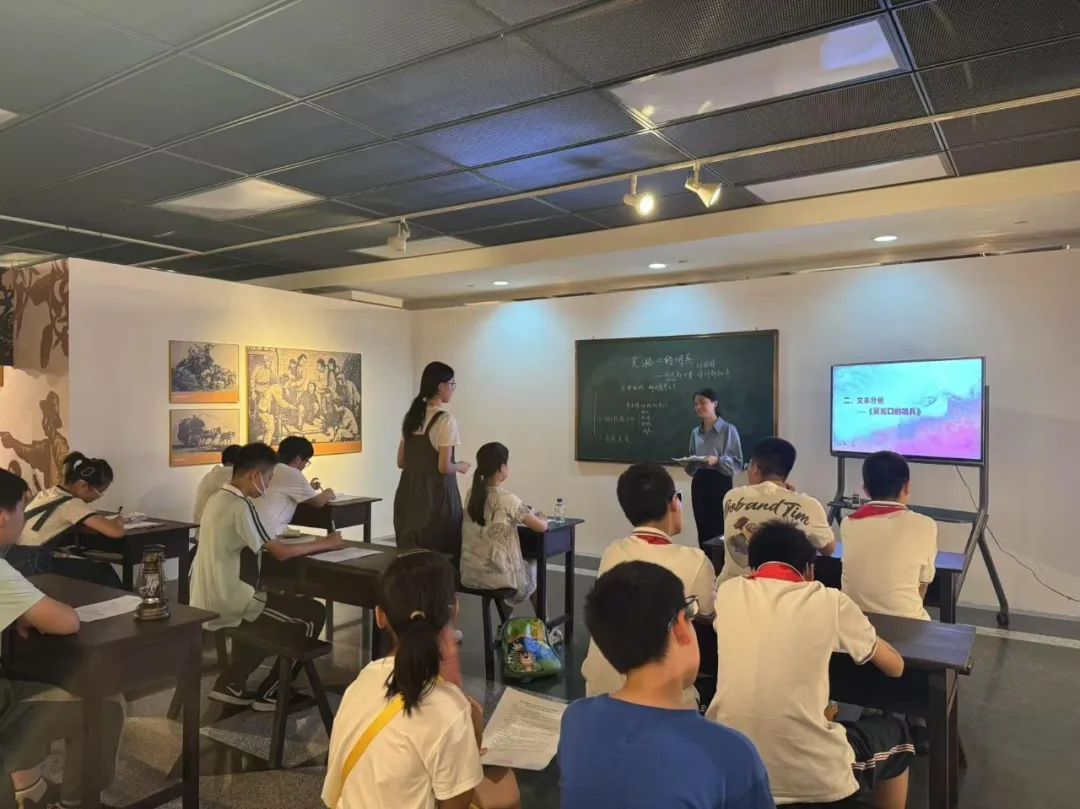 在展厅内的“延安抗大教室”场景复原区,读者们齐聚“战时课堂”,品读抗战诗歌,体味精神火种,在暑假开端体验了一场独特的文学课堂。这堂课程是由上海大学文学院带来的《淞沪抗战诗歌:战火中的文学丰碑与爱国情怀传承》中学生暑期大思政课程。另外还有上海大学、华东师范大学的专家学者带来《抗战中的空军和海军》讲座、《上海抗战文化的精神力量和当代意义》讲座、《近代救亡图存运动下的中国民族漫画艺术》讲座等多场配套活动,吸引了300多人次读者参与。