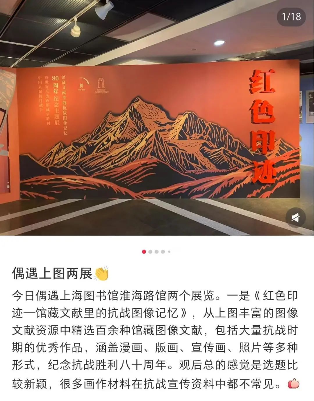 正在上海图书馆淮海路馆展出的“红色印迹:中国人民抗日战争暨世界反法西斯战争胜利80周年纪念主题展——馆藏文献里的抗战图像记忆”即将收官。