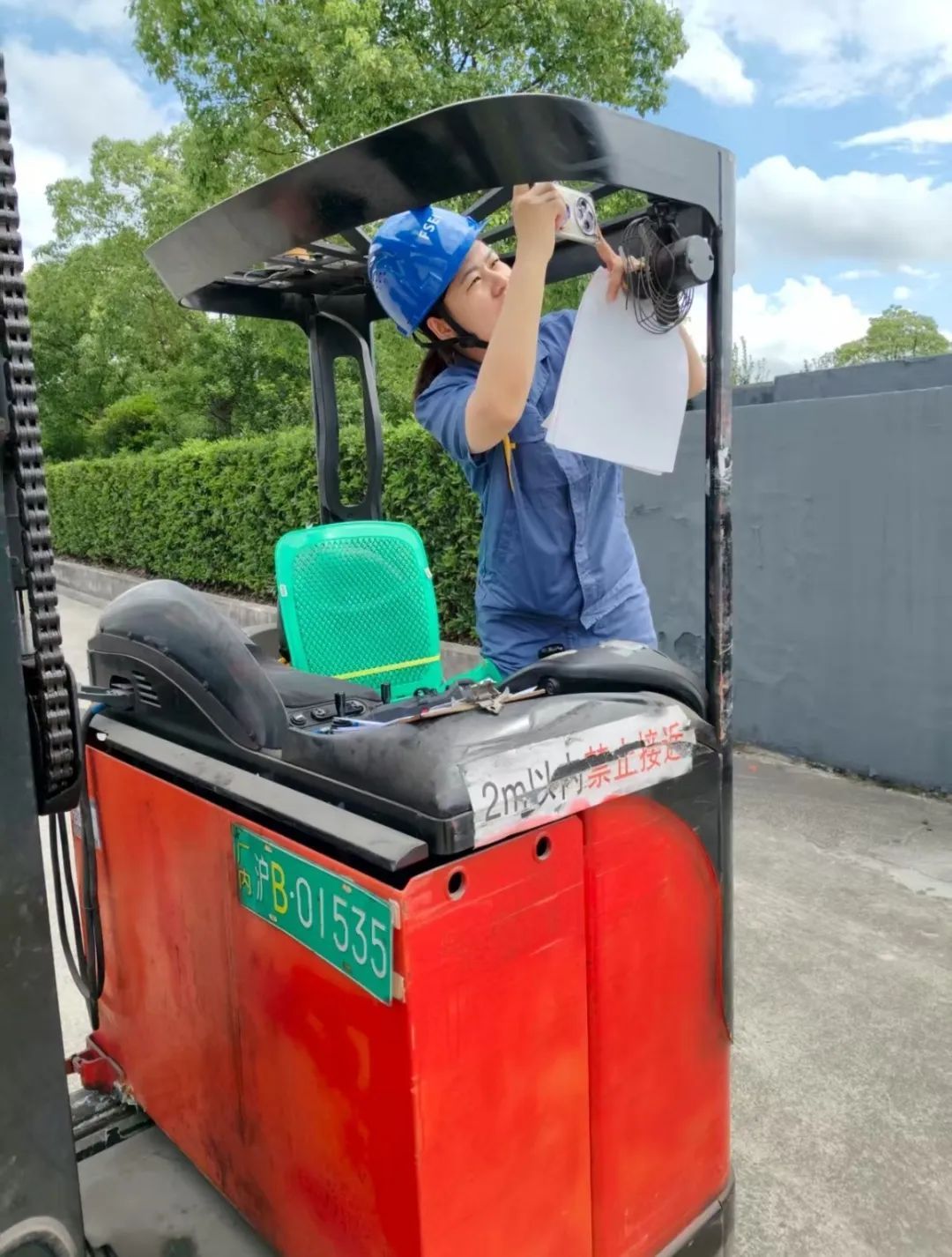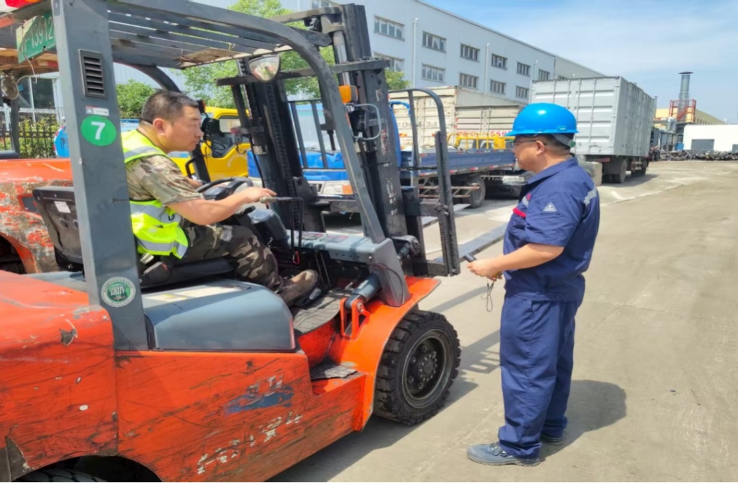 在柘林镇的上海文鑫拆车有限公司,检验人员为即将到期的两台叉车提供“免申先检”服务,现场指导填报单据,高效完成检验,保障设备合法安全使用,获企业高度好评。