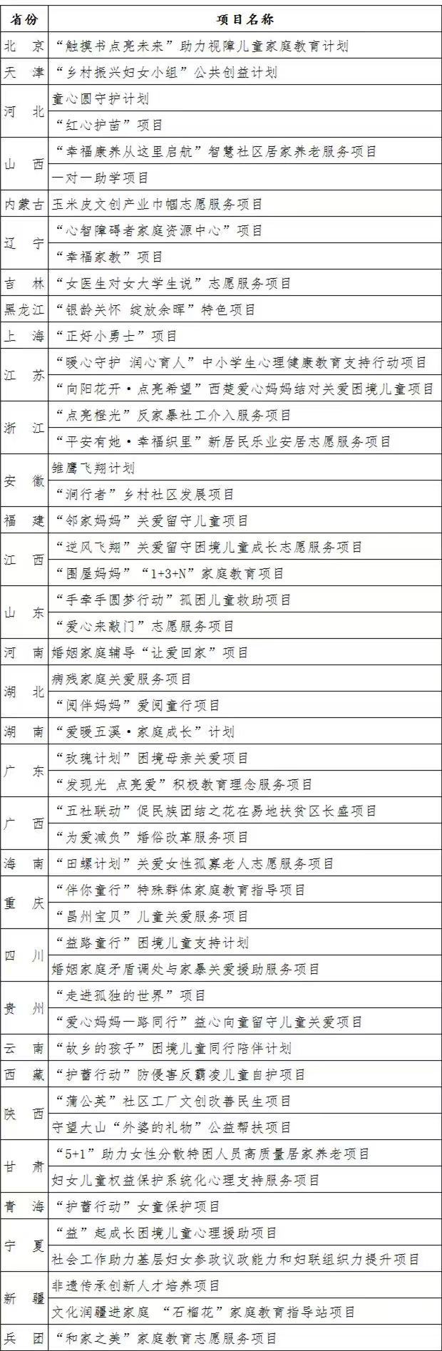 女性社会组织服务妇女儿童和家庭特色项目名单(共50个)
