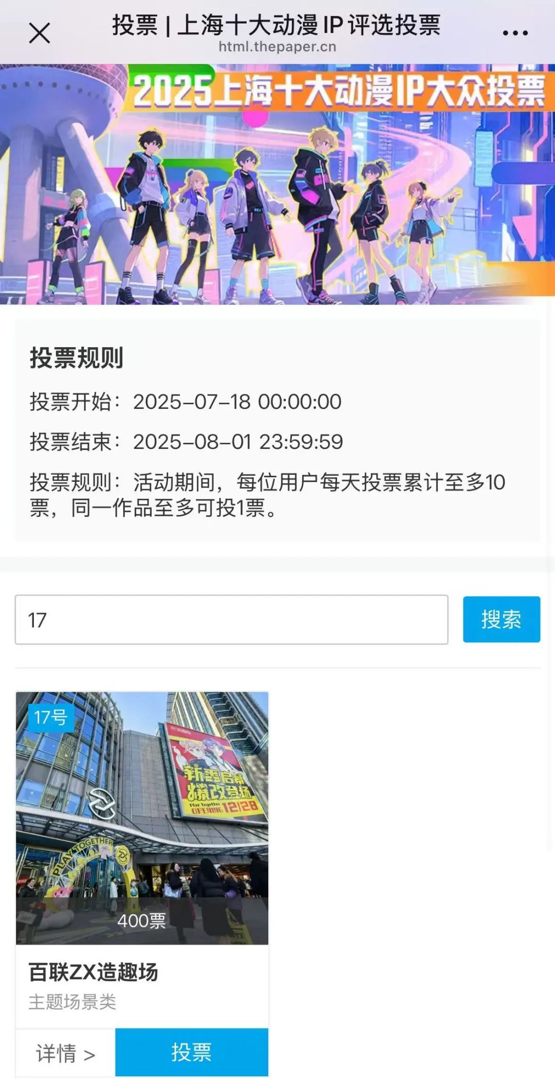 投票期间,每位用户每天投票累计至多10票,同一作品至多可投1票。最终评选结果将于2025年底公布。