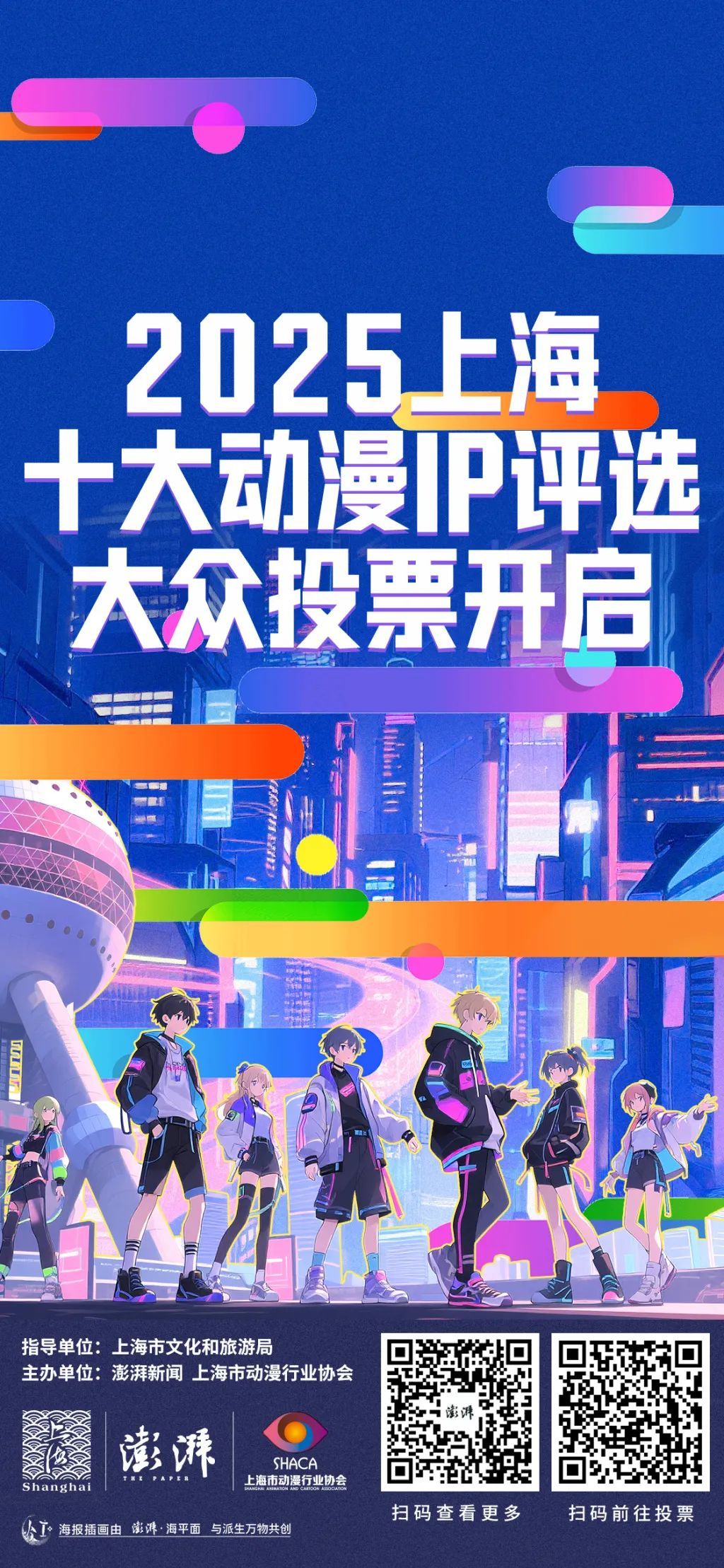 2025上海十大动漫IP评选活动由上海市文化和旅游局指导,澎湃新闻、上海市动漫行业协会主办。本活动旨在挖掘本土优质动漫IP,讲好中国故事,提升上海城市形象,助力上海打造“中国入境旅游第一站”;鼓励原创精品创作生产,促进数字内容商业转化,推进动漫产业集聚发展和生态构建;丰富动漫多元主题消费,促进文旅商体展融合发展,增强城市消费活力,培育一批具有国际影响力的动漫IP,加快全球动漫游戏原创中心建设。