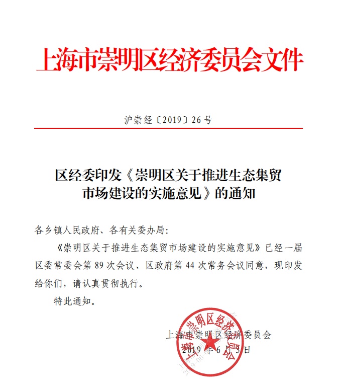 2019年6月,崇明区印发《崇明区推进生态集贸市场建设的实施意见》(沪崇经〔2019〕26号)。并于2021年9月,更新印发了《崇明区关于推进新一轮生态市集建设的实施意见》(沪崇经规〔2021〕4号),不断深化生态市集顶层设计。按照新的《实施意见》精神,崇明区以项目审价报告中乡镇人民政府投资总额为依据,按照区级联合评审小组评定的生态市集一、二、三星级,分别按照25%、30%、35%比例给予项目建设经费支持。支持总额原则上不超过500万元、1000万元和2000万元。2019年以来,崇明区通过建设补贴资金撬动,成功创建生态市集三星级菜场1家、二星级菜场11家、一星级菜场7家,累计拨付生态市集建设补贴资金1420.2418万元,已验收通过待拨付1132.6856万元。