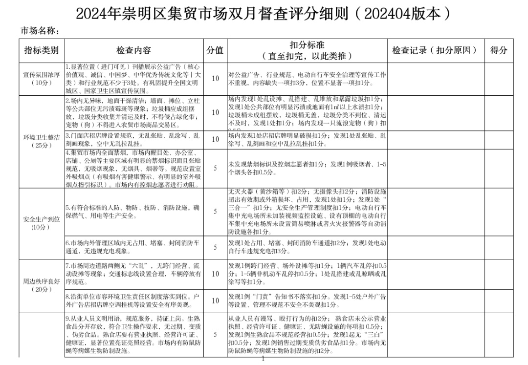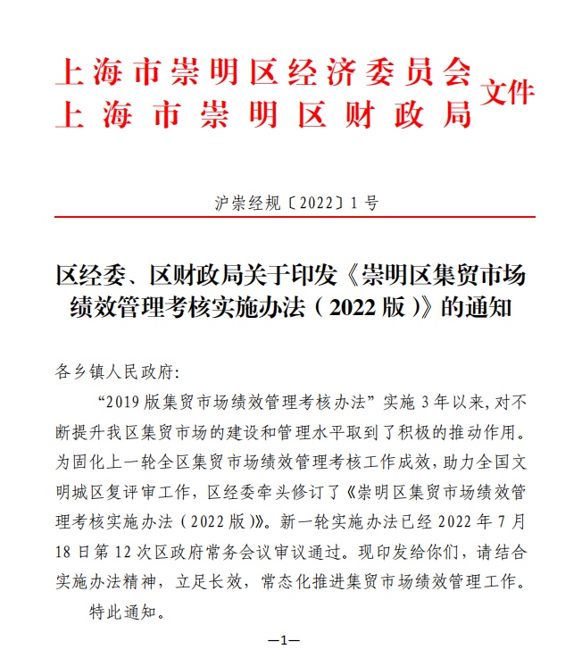 崇明区集贸市场绩效管理考核实施办法