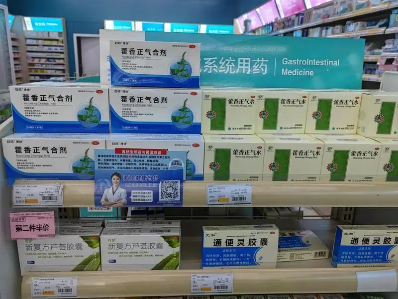 在位于中华路上的海王星辰,记者看到藿香正气水、藿香正气合剂风油精、清凉油、金银花露等“明星消暑单品”被摆放在了显眼的位置。