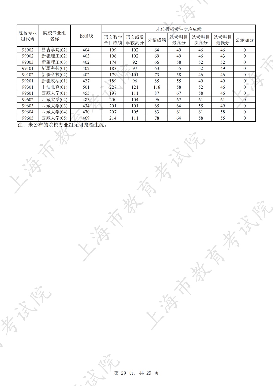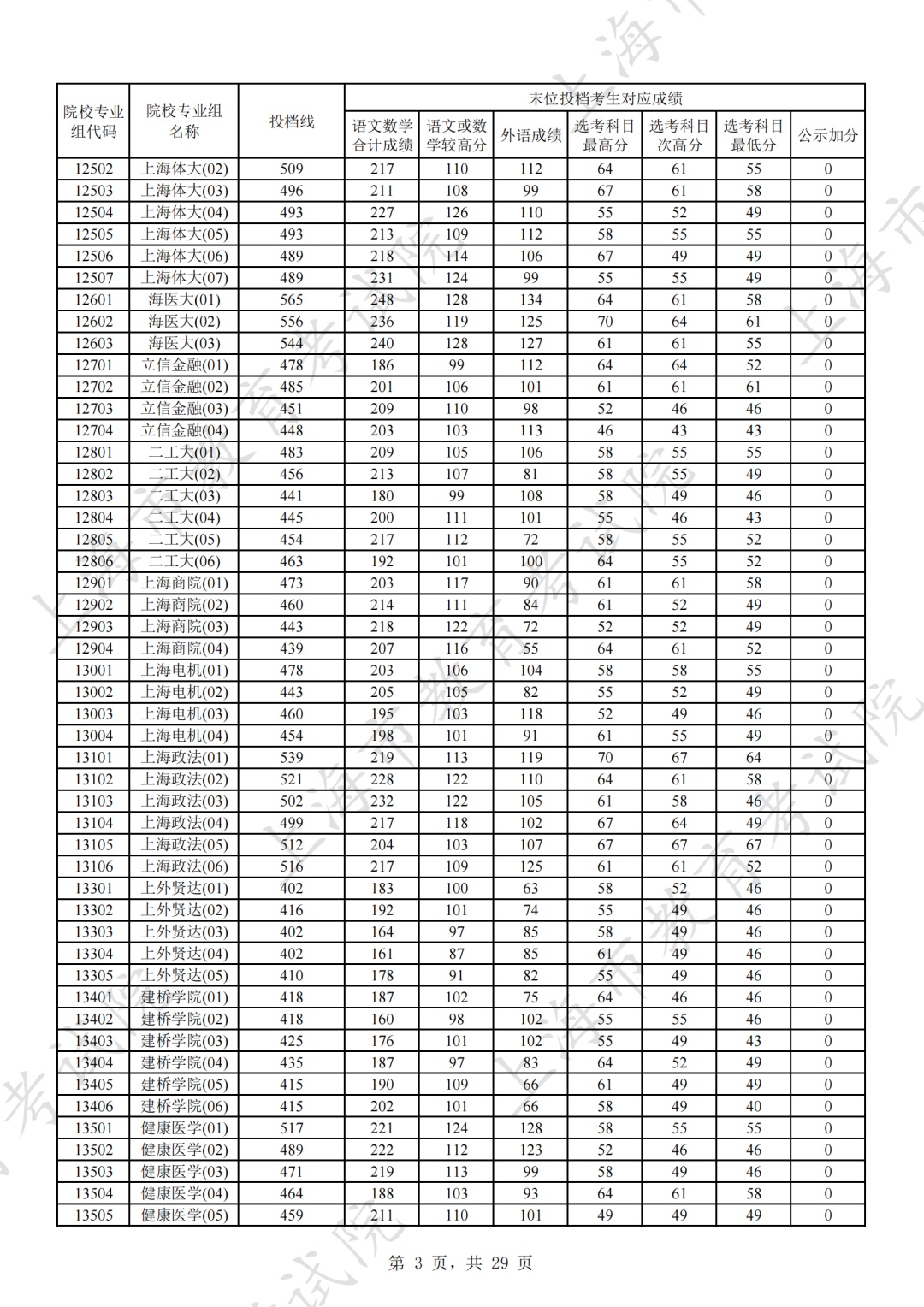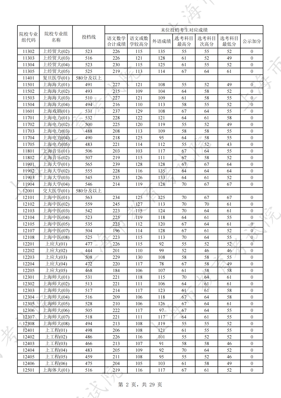 上海市2025年普通高校招生本科普通批次平行志愿院校专业组投档分数线公布,详见↓