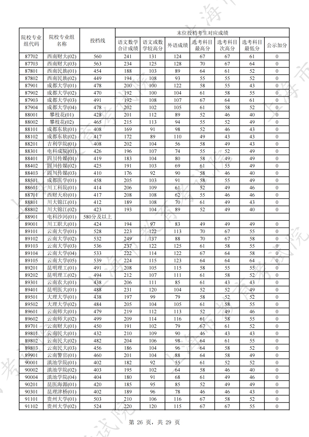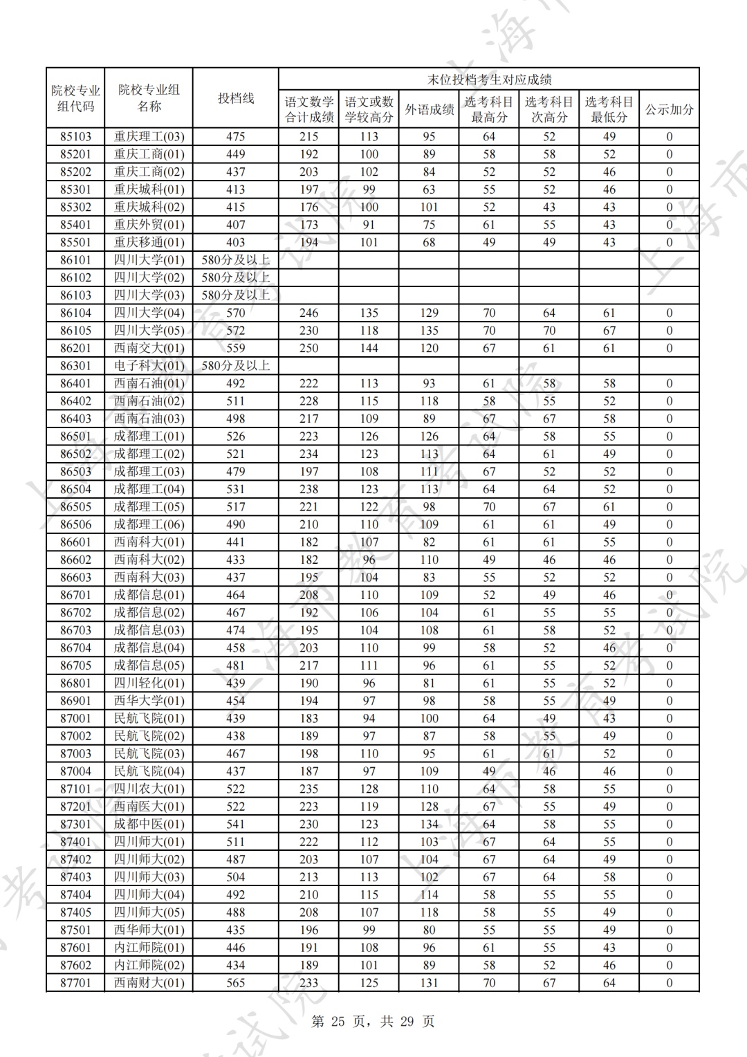 上海市2025年普通高校招生本科普通批次平行志愿院校专业组投档分数线公布