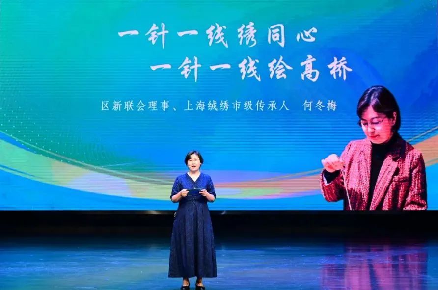 2025年浦东统战文化周三项重点项目主理人分别进行了展示,区新联会理事田志国分享了“寻美上海·科技筑梦向未来”文学创作活动,以一支笔书写统战成员携手科技创新的时代交响;市欧美同学会浦东分会副会长成守正分享了“歌声中的我们”海归及留学学子歌唱大赛项目,以一首歌唱响统一战线同心同向的时代之声;区新联会理事、上海市五一劳动奖章获得者何冬梅分享了“同心聚能绘高桥”文创设计大赛项目,以一根针绘就统战文化与灵感创意的交融匠心。通过项目展示,充分展现了新时代浦东统一战线在传承中创新、在聚力中奋进的生动实践。