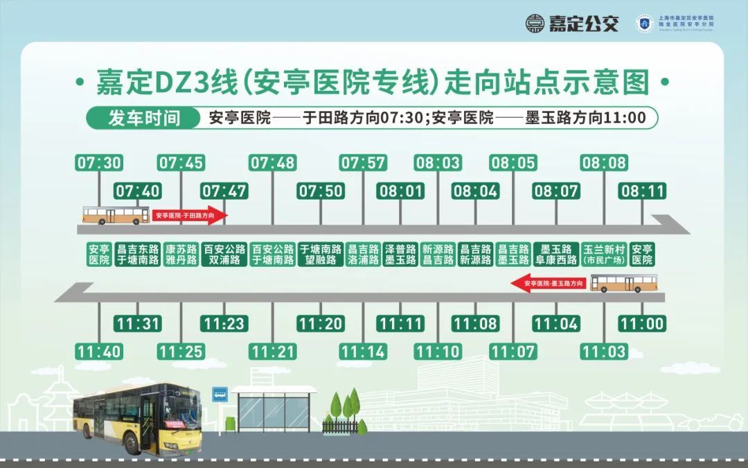 ▶ 嘉定DZ3线(安亭医院就医专线)暂不增加周日班次,敬请知晓!