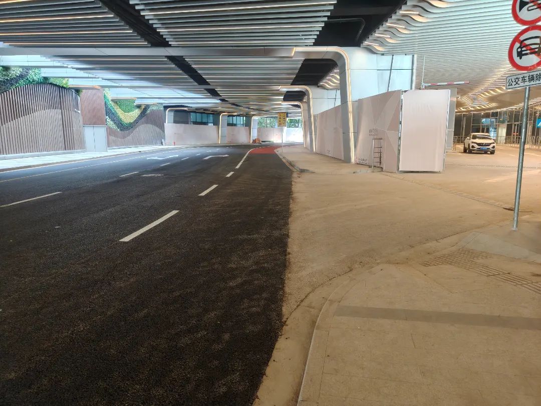 在项目方案制定过程中,区建管委、区交通管理中心牵头与徐家汇中心开发商新鸿基公司协调,将昭平路道路与徐家汇连廊四期、徐家汇中心公交枢纽及徐家汇中心裙楼进行统一设计,有效打破了传统道路与建筑之间的界限,实现了市政道路与公共、商业建筑的有机融合,为打造高品质的公共出行空间奠定了坚实基础。