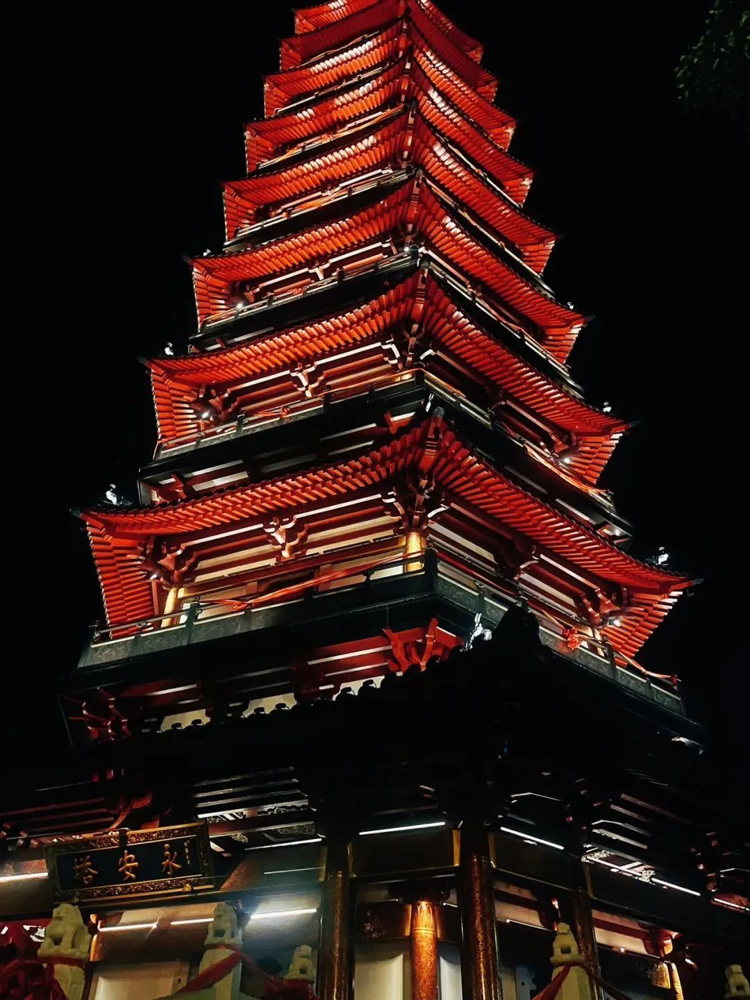 永安塔在18点准时苏醒。鎏金塔刹刺破夜幕,九层塔身流转着琥珀色光晕,将“永安朝晖,双桥塔影”的千年盛景重现人间。