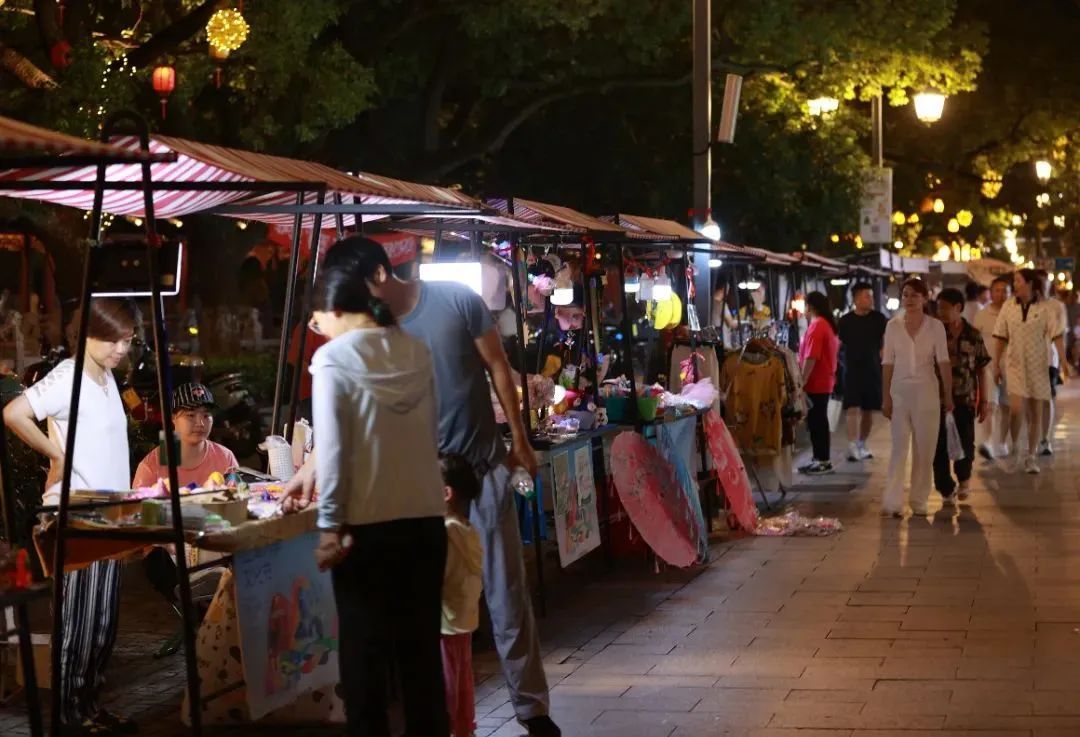 漫步其间,五感皆被夏夜的丰盈填满。青石巷深处飘来现烤海棠糕的焦香,混着现磨咖啡的醇厚,在鼻尖跳起探戈;创意市集里,非遗匠人正演示绒花制作,蚕丝在指尖绽放成牡丹,引得孩童踮脚张望;转角处的露天剧场,评弹艺人怀抱琵琶,吴侬软语唱着《太湖美》,余韵与河对岸酒吧的爵士乐隔水相和,碰撞出奇妙的时空交响。