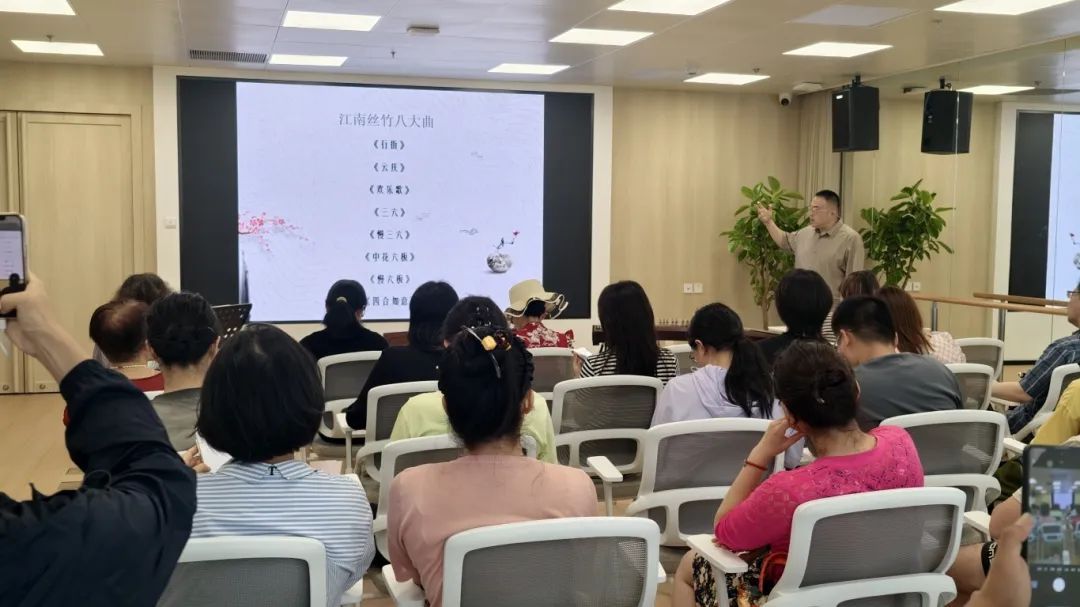 日前,焕新启幕的徐汇区湖南街道世纪商贸党群服务中心座无虚席,一场江南丝竹赏析之旅在此奏响。来自上海国乐研究会的五位演奏家以丝竹为媒,将国家级非物质文化遗产的独特魅力送进楼宇,让白领们在午休间隙、公司“门口”便沉醉于传统音韵之中,感受非遗雅乐的治愈力量。