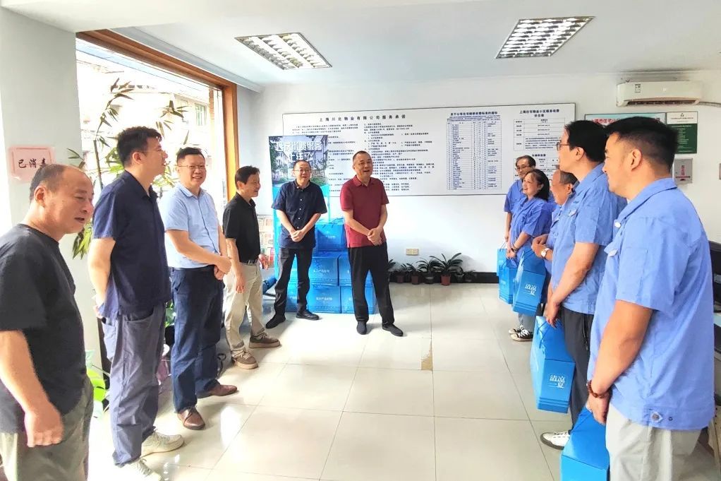 谭群一行先后前往北外滩物业、一征所74街坊征收基地、兴城物业、川北物业、宏阳物业、虹口房屋急修中心,看望慰问奋战在高温一线的干部职工。