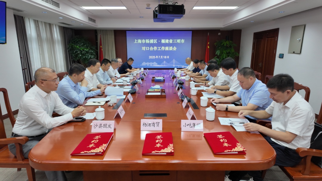 7月18日上午,杨浦区·三明市对口合作工作座谈会暨沪明沙县小吃食品产业园共建签约仪式举行。杨浦区委常委、常务副区长尼冰,三明市市委常委、常务副市长杨国昕出席会议。三明市政协党组副书记、副主席罗金水,上海市人民政府合作交流办公室二级巡视员杜伯伟等参加会议。