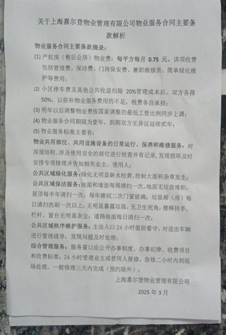 光新路129弄小区竣工于1985年,是当年普陀区著名的棚户区“三湾一弄”中的朱家湾拆迁后建设安置拆迁居民的小区,小区总建筑面积只有1.9万平方米,12个门牌号,均为总高7层的多层建筑,共498户居民。经小区业主大会决议,小区物业费在2025年4月1日从0.44元涨到0.75元/月/平方米,2026年3月1日起涨至0.8元/月/平方米。
