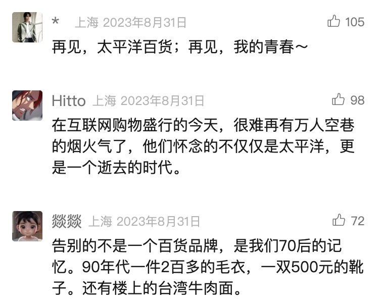 然而,步入新世纪,上海商业发生翻天覆地的变化,太平洋百货徐汇店屹立徐家汇商圈30年,于2023年8月31日终止营业,那首《宝贝,对不起》也就此谢幕。