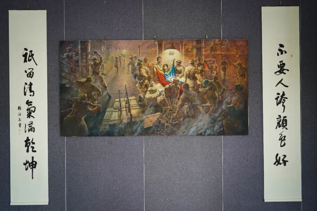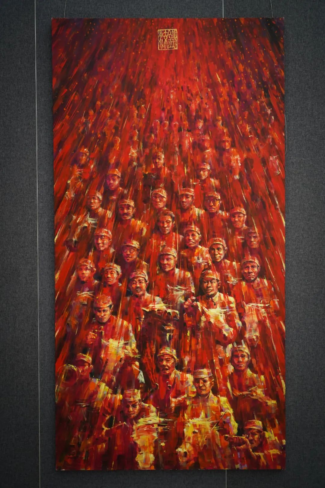 展览共分风雨岁月、铁流、沪派江南三个部分,作品涵盖书法、国画、油画等艺术形式。从大型油画《黄河1939》《四行壮歌》到《雪融•古田会议》《铁流》《万里长城永不倒》《大刀向鬼子头上砍去》等,一幅幅画作清晰展现了中国共产党率先高举武装抗日旗帜、抵抗日本军国主义侵略的民族先锋作用。“红军的经历感动了我们,抗战精神一直激励着我们,对于前辈抗战的伟大壮举,作为文艺工作者,我们怀着很崇敬的心情,通过自己的创作抒发感情,让更多的观众直观地了解历史。”参展艺术家张献民说。