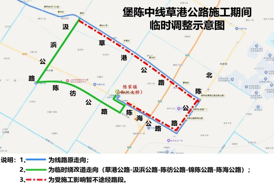 (2)调整煊洲(陈家镇(长江大桥)方向)至汲浜公路草港公路(煊洲)(堡七线堡镇汽车站方向)。