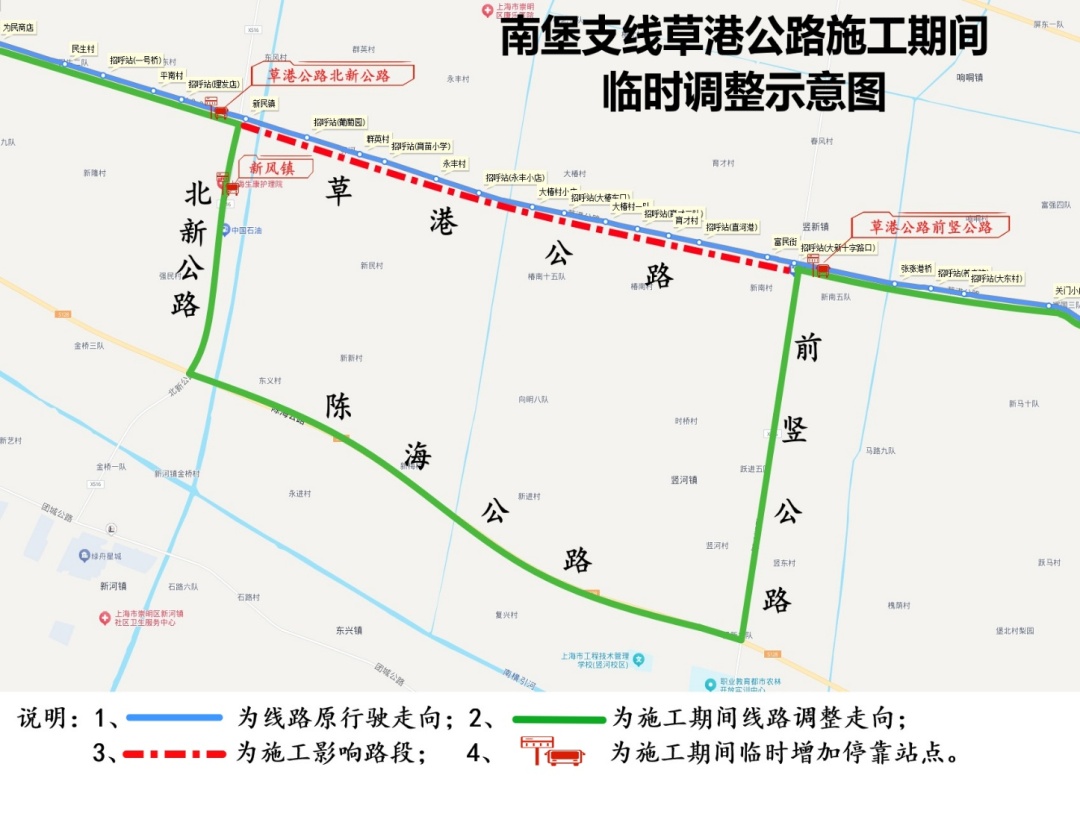 受草港公路道路养护施工影响,崇明巴士拟对途经线路走向及站点进行调整,请市民乘客相互转告,合理安排出行!