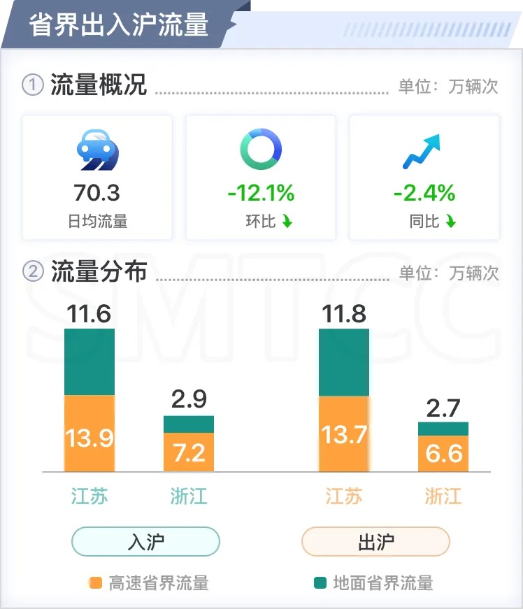 省界流量以江苏方向为主,占比为72.5%,浙江方向流量占27.5%。