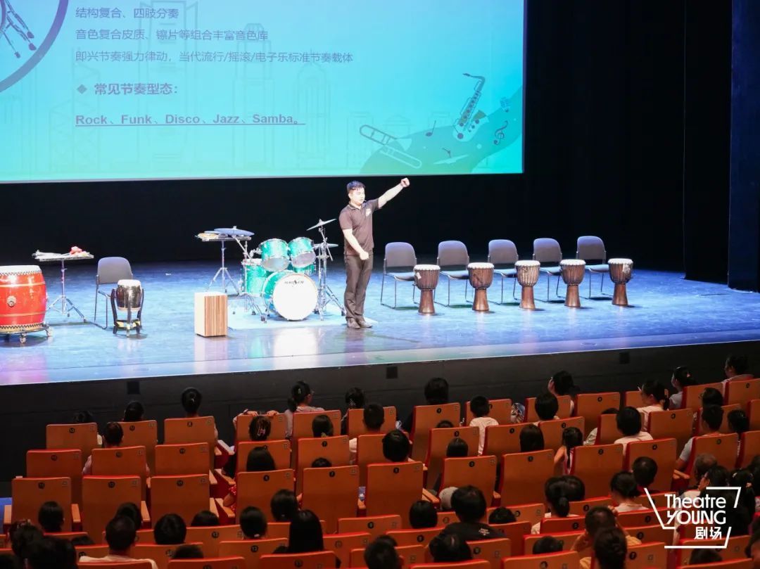 “大朋友、小朋友们,可以听出鼓声的区别吗?”大堂鼓的轰隆声如滚雷闷响,小堂鼓的清脆节奏似马蹄疾驰,爵士鼓豪迈奔放,木箱鼓活泼灵动,非洲鼓节奏轻快……舞台上,各式各样的鼓点交织成丰富的音乐画卷,台下的孩子们瞪大了眼睛,原本以为枯燥的鼓点,竟藏着乐手们的灵魂与故事。