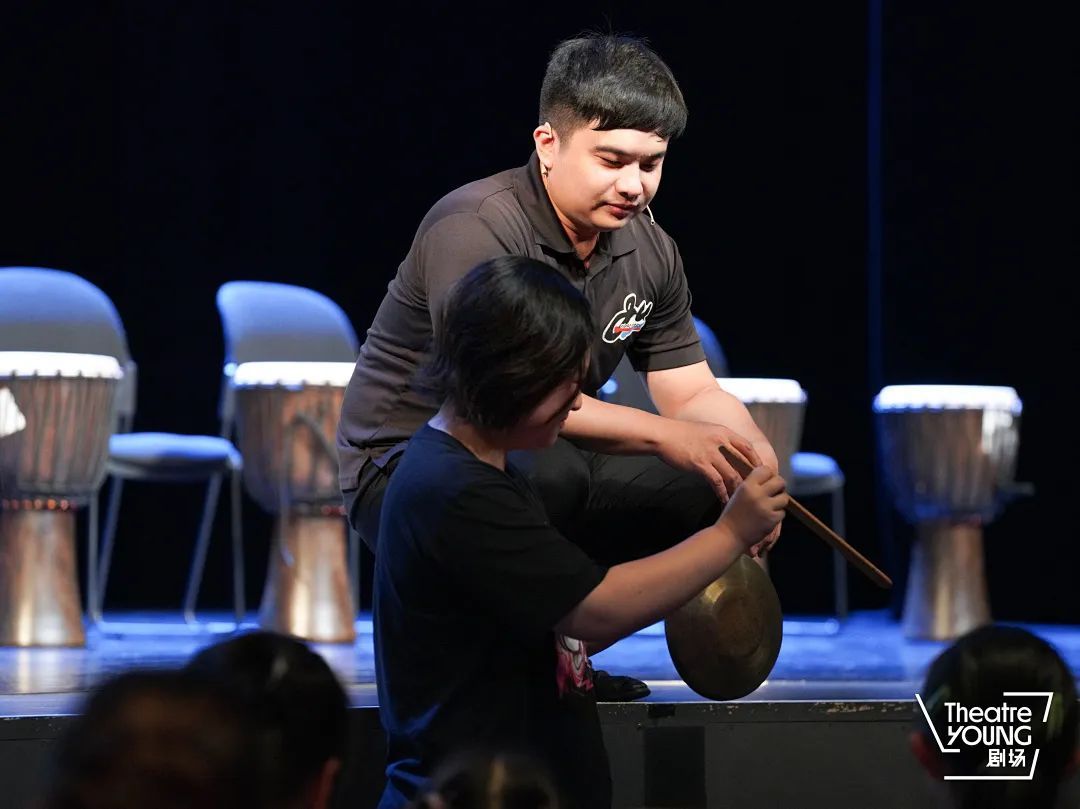 随后,现场还展示了镲、铃鼓等其他打击乐器,并邀请小朋友们上台体验。