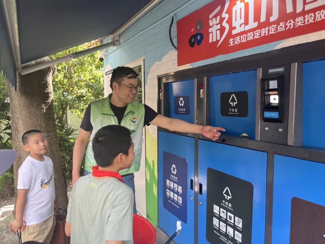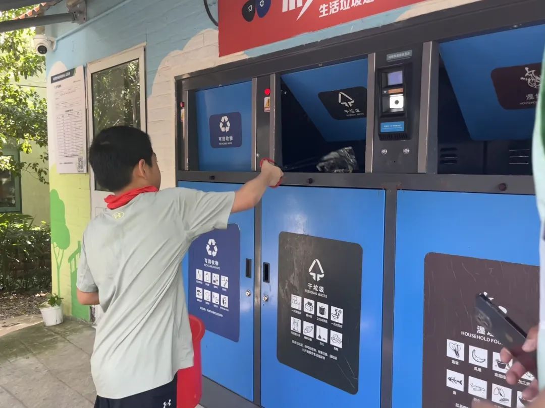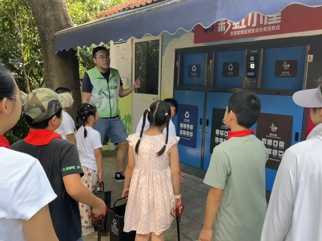 在暑托班播撒环保种子的同时,高境五村居民区少工委也组织馨良苑、象屿郦庭社区的“小先生们”,开展了“童声传理念,行动践文明”最美清道夫暑期实践活动。活动现场,志愿者详细讲解了分类重要性、四分类标准及智能厢房使用方法。