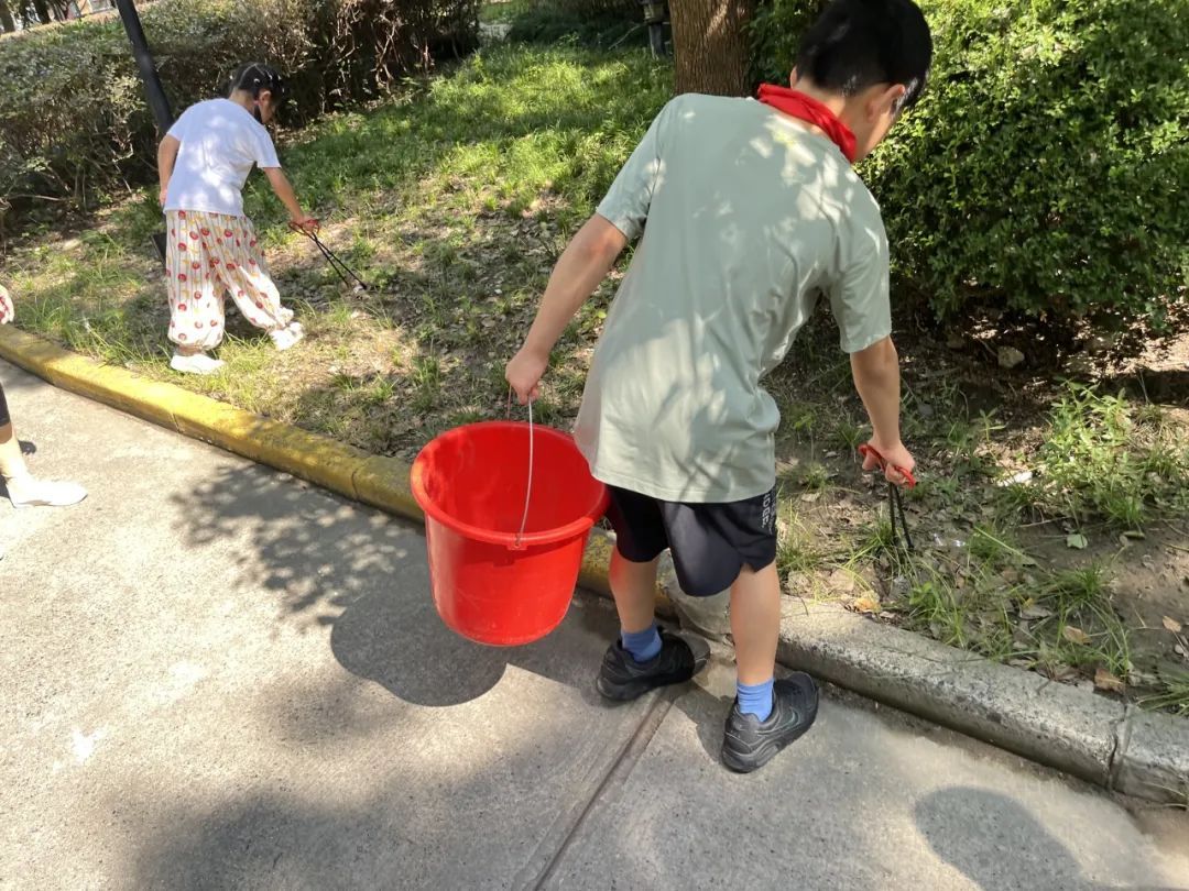 之后,“小先生们”化身“环保小卫士”,沿小区主干道巡查,深入绿化带捡拾垃圾,清理环境死角。活动结合知识宣传与实践,深化了“小先生们”对分类的理解,增强了环保责任感与素养。