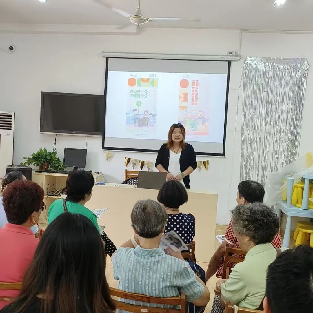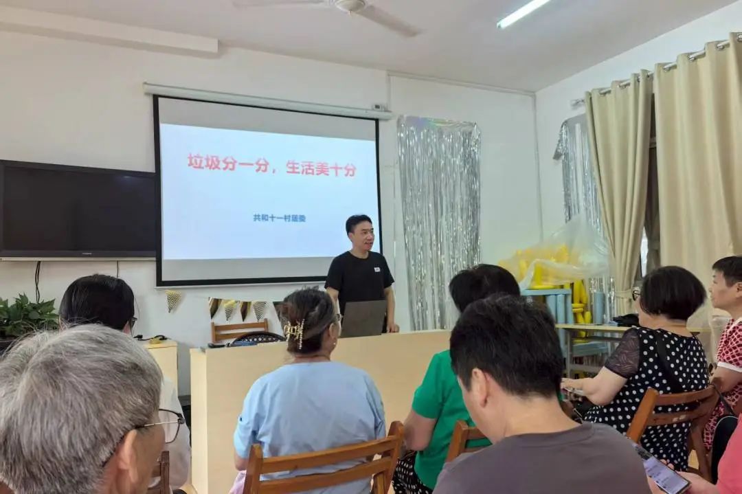 除了针对青少年的活动,共和十一村居民区也在居委会一楼举办了“分类大课堂”专题宣传活动,30余位居民参与。活动期间着重阐述了垃圾分类对环境保护的关键作用,呼吁居民主动学习分类知识。并通过垃圾分类宣传片的播放,详细展示了标准流程与操作方法,并结合生活实例讲解易混淆垃圾的分类方式。