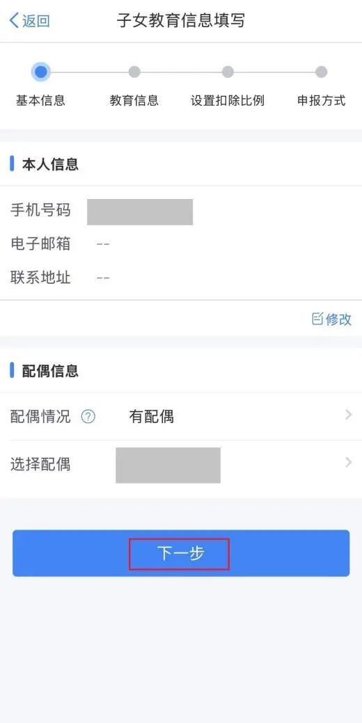 2.先确定“基本信息”无误后,点击【下一步】填写“教育信息”,【当前受教育阶段】选择“学前教育阶段”,【当前受教育阶段开始时间】选择“年满3周岁当月”后点击【下一步】。