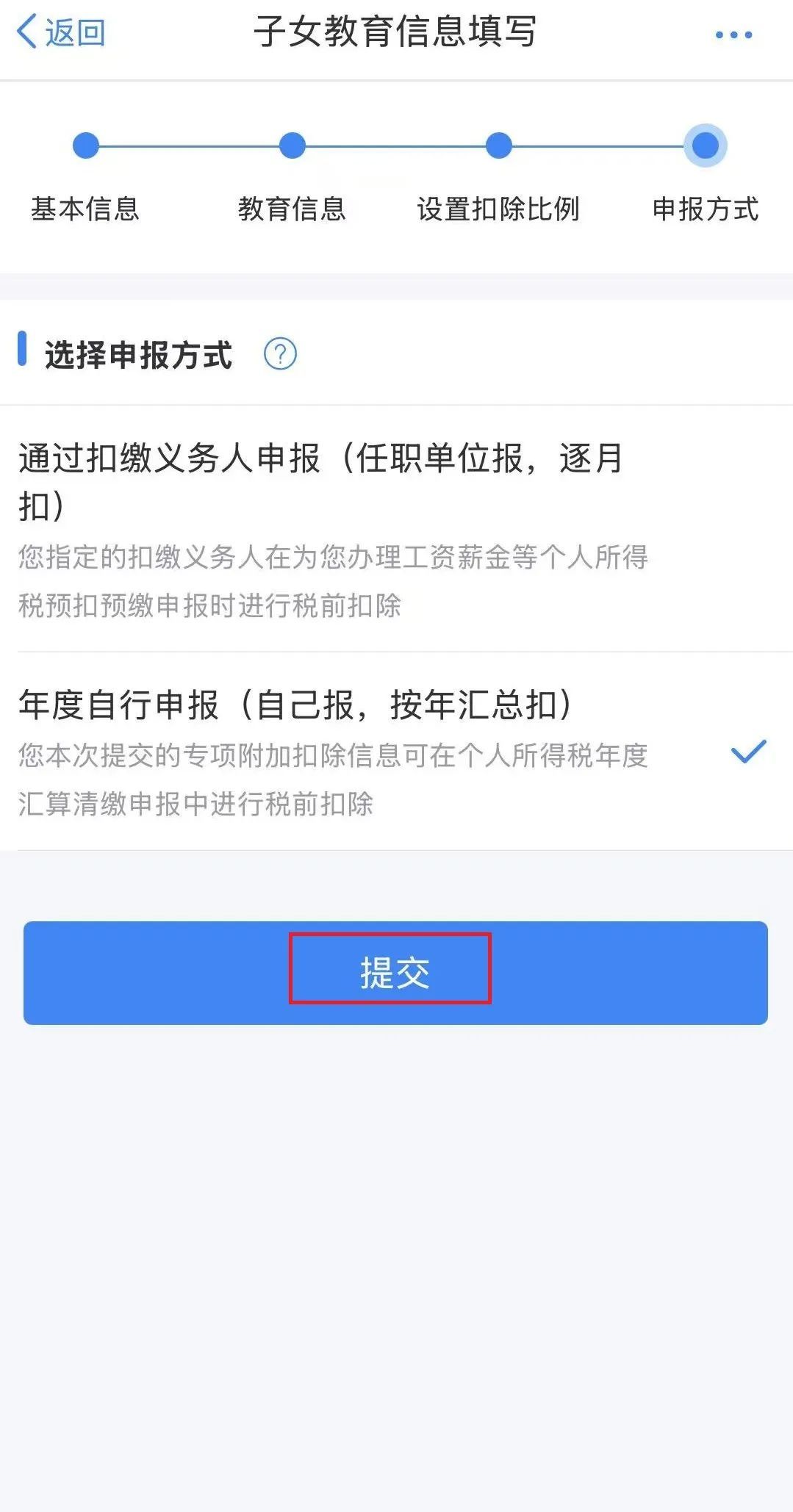 3.选择“扣除比例”和“申报方式”后提交即可。