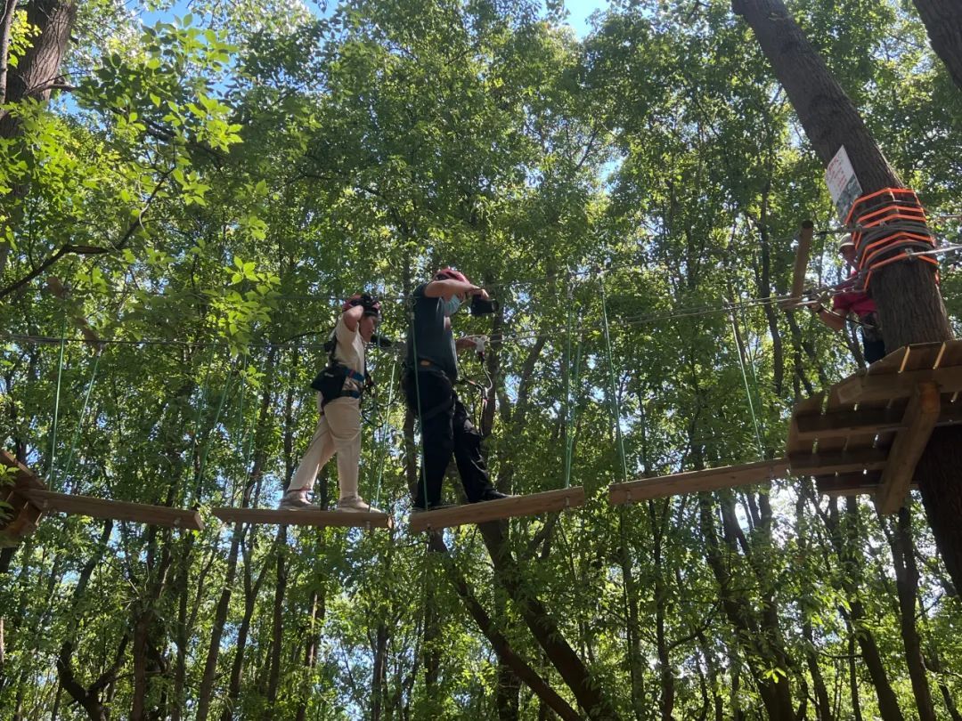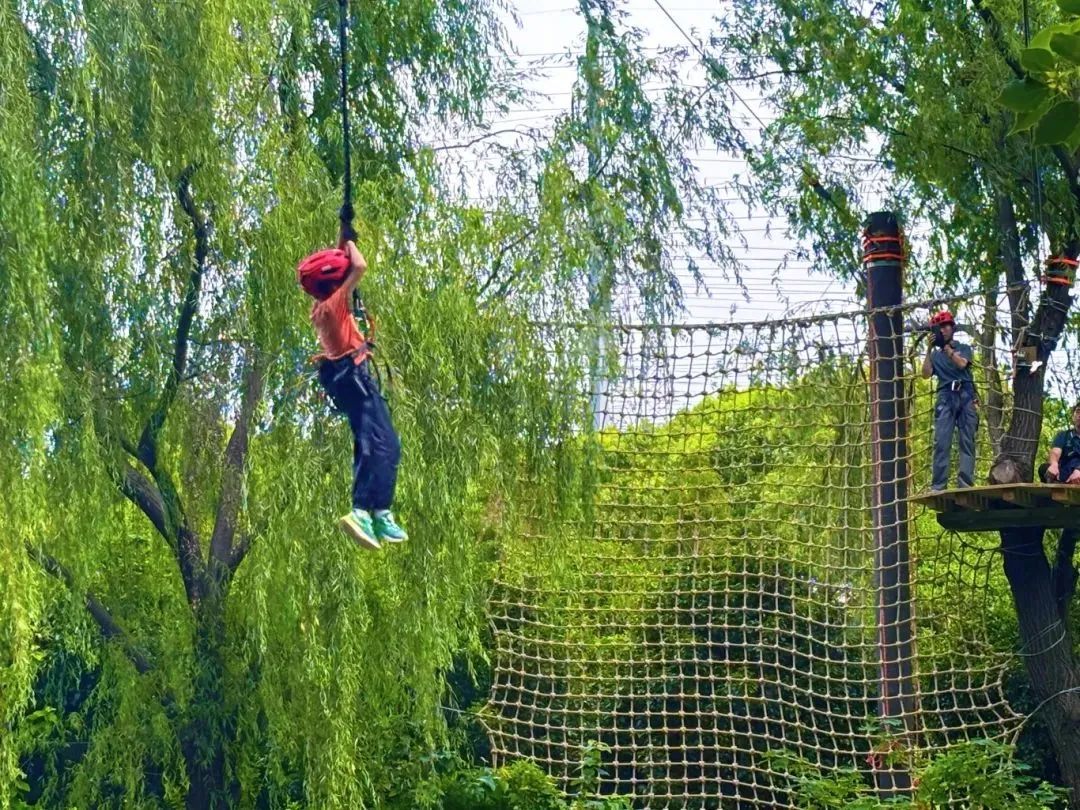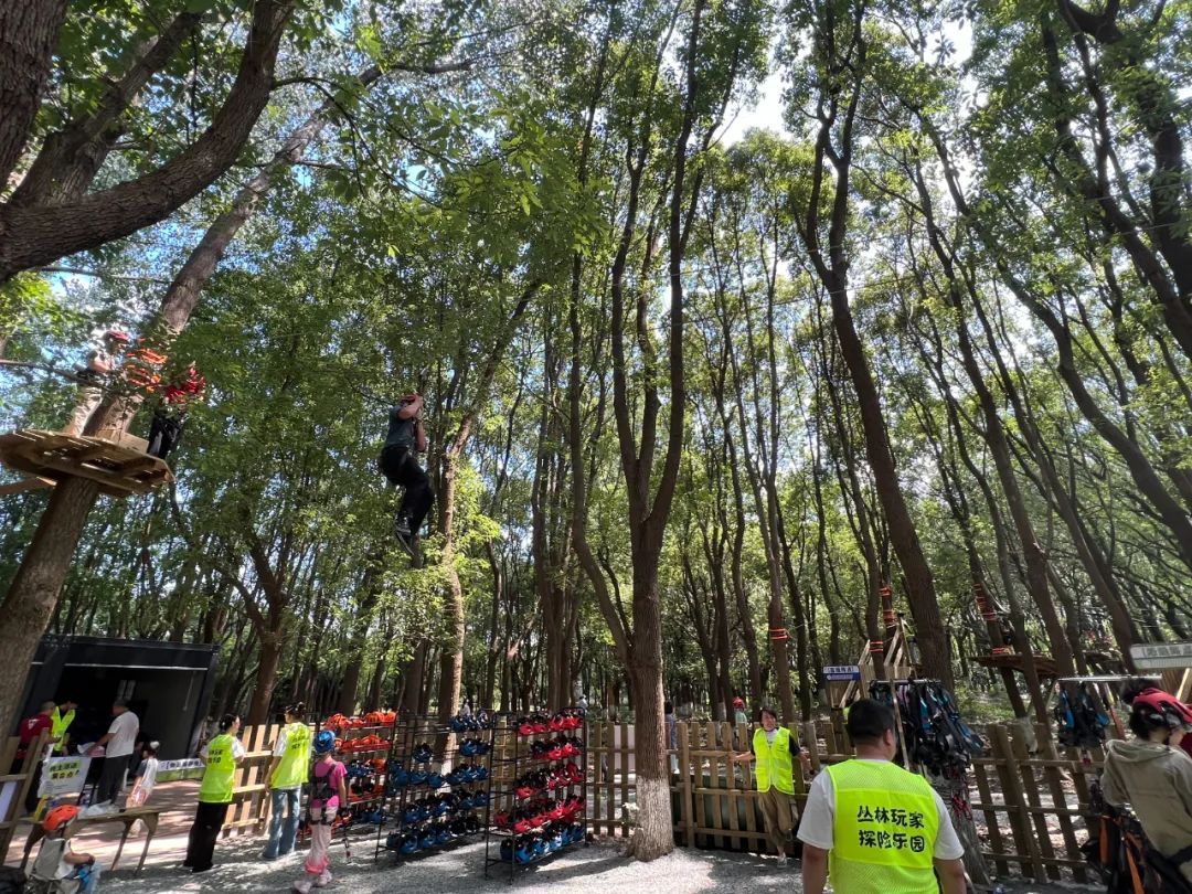 魔都亲子户外游玩再添一处硬核打卡地。8月8日上午,占地五万平方米的丛林玩家探险乐园(上海松江九科绿洲店)在九亭镇九科绿洲公园西区盛大开业,为魔都亲子家庭和户外爱好者带来一处融合自然、运动与挑战的树顶探险新选择。开业仪式后,众多家长带着孩子率先体验了穿梭于绿荫间的独特魅力。