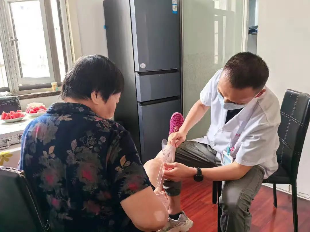 在夏阳街道城东新村小区内,来自夏阳养护院的康复师正用专业测量仪为吴阿姨检测膝关节活动度。此前,吴阿姨手术后行动受限,而在家庭照护床位服务团队的专业指导下,吴阿姨通过定制化的康复训练,逐步恢复了肢体功能。这一幕,正是青浦区推进“家庭照护床位”建设的生动写照。