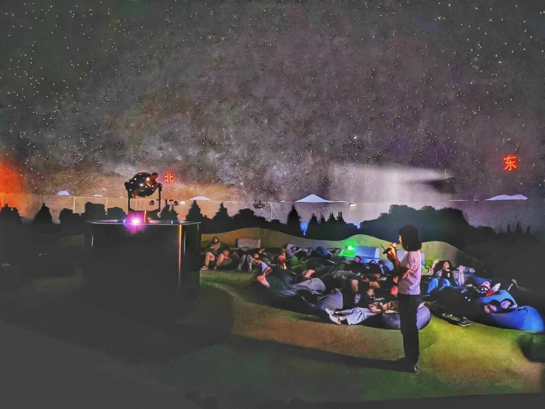 全新打造的天文文创项目“邂逅星空”沉浸式夜探研学活动,以“星空观测”为主题,通过科普讲座、主题导览、星空音乐会、星空模拟演示、指星认星等环节,结合馆内高精度光学天象仪、8K球幕影院、一米望远镜等核心设备,为参观者呈现一场震撼的天文科普之旅。
